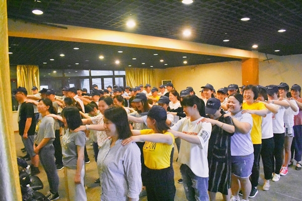 當然,肯定還是會出現6人不滿情況,拉上去,表演下。顯然,效果是杠杠的,瞧我們這些人,都樂開了花。在這一瞬間,我們發現,工作狀態下的沉默寡語,演示不了他內心的逗逼潛質。