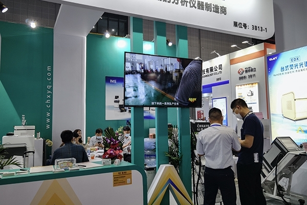 在本次展會中,公司展示了多款儀器,系列直讀光譜儀,移動式直讀光譜儀,碳硫分析儀,X熒光光譜儀系列,手持式光譜儀,ICP光譜分析儀等多款元素分析檢測儀器。在本次展會中,展示了幾款新的產品,一款是CX-9800Pro直讀光譜儀,一款是ICP光譜分析儀,在我們專業的銷售人員的介紹下,多位鑄造參展嘉賓駐足我司展臺,了解這2款新產品的性能和檢測領域。X熒光光譜儀系列產品于去年亮相第十八屆鑄博會后,到場眾多客戶在現場及會后咨詢,2款X熒光光譜儀針對不同領域都有著出色的應用。移動式直讀光譜儀,不同于其他實驗室儀器,檢測環境不受限制,可方便快捷的進行多領域檢測,上市以來,深受廣大客戶的喜愛。