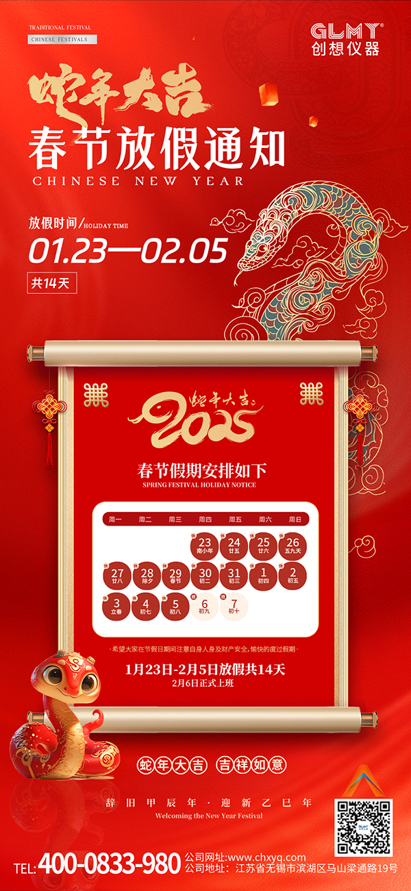 2025年新春佳節,創想儀器對今年的春節放假作以下安排: