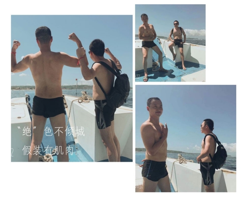 離開“海上游玩基地”,我們前往夢幻海灘,路上“妖嬈二人組”奉獻了一組假裝有八塊腹肌的照片,我只能冒死表示欣賞不了,還好前方的夢幻海灘清洗了我們的眼睛。