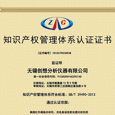 創(chuàng)想儀器GLMY順利通過本年次的知識產(chǎn)權(quán)管理體系認(rèn)證,并獲證書。 無錫創(chuàng)想分析儀器有限公司是一家具有自主知...