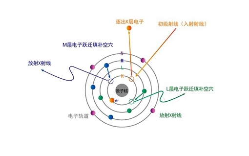 如果要得到某元素的特征X射線,需要對元素原子內(nèi)層電子進(jìn)行激發(fā),使得內(nèi)層電子獲得一定能量,能夠脫離原子核的束縛,從而在內(nèi)層軌道形成電子空穴,當(dāng)較高能級電子填補(bǔ)這一空穴時,才會發(fā)射一定能量的特征X射線,這個過程就是X射線的激發(fā),也就是X射線熒光的基本原理。