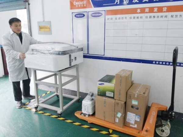 創(chuàng)想售后部同事深入光譜儀生產(chǎn)車間熟悉儀器發(fā)貨流程。